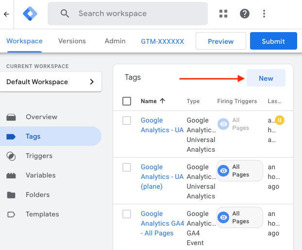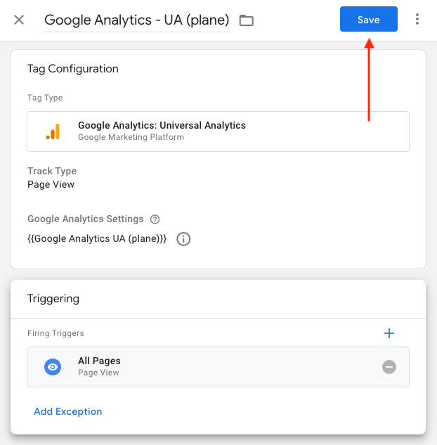 Save your Tag Configuration and submit all settings on the Workspace screen.