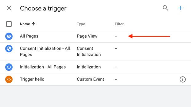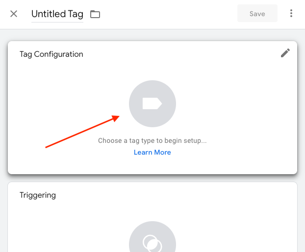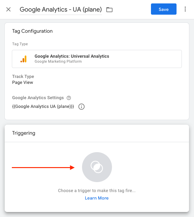 Click Triggering to choose a trigger to “fire” the tag. You may select an existing trigger or click the + icon to define a new one.
