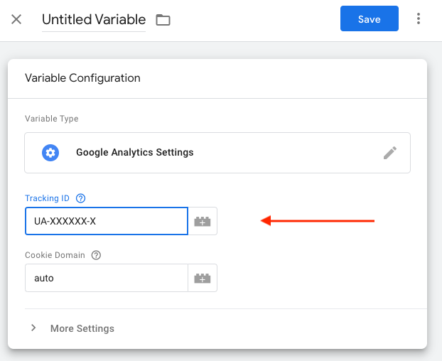 - In the Variable Configuration screen, enter your Google Analytics ID.