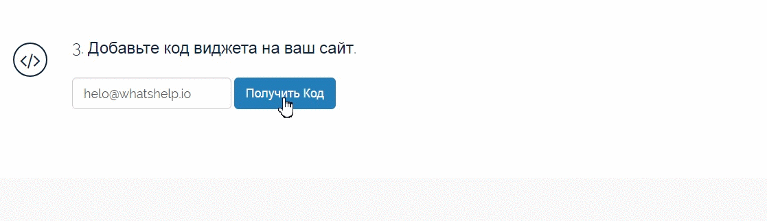 Введите в поле e-mail, на который вам выслать код, и после нажмите на кнопку "Получить код". Можете сразу скопировать код виджета с сайта или позже с email.
